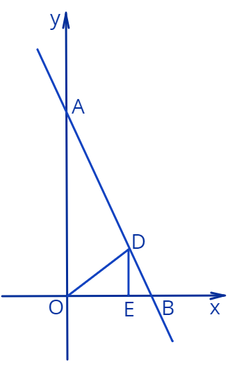 9. Прямая с угловым коэффициентом \(k=-2\) пересекает ось \(x\) в ее положительной части в точке \(B\) и ось \(y\) в ее положительной части в точке \(A\). Точка \(D\) лежит на прямой \(AB\) в первой четверти координатной плоскости (см. рисунок). Точка \(E\) лежит на оси \(x\) так, что отрезок \([DE]\) параллелен оси \(y\). Обозначим длину отрезка \(OE\) через \(p.\)