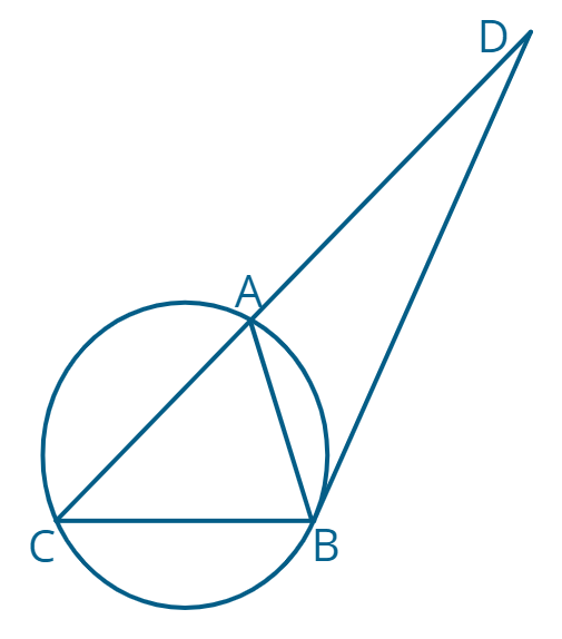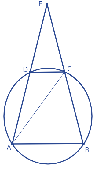 9. Дана трапеция \(ABCD\: (AB\:||\:DC)\), вписанная в окружность. Продолжения сторон \(AD\) и \(BC\) пересекаются в точке \(E\).